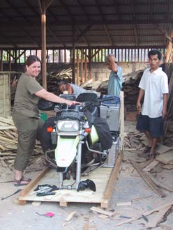 But fortunately the plank with the bike was sliding with the pickup as well so there was no harm and soon the bike was strapped up on the pickup. When we arrived at their office there was a lot of talking going on and finally we managed to find out that they hadn't arrange a single thing. So after another couple of hours Martin decided to bring the bikes directly to the workshop and explain the carpenters what they had to do. These boys were really nice and this move worked out perfectly and finally after a long and hard day both bikes were in crates.