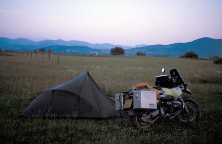 een motor in een open landschap niet echt prettig rijden. Toch nog op de camping