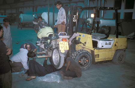 Dit hield in dat de motor met een heftruck iets opgetild werd en men zo