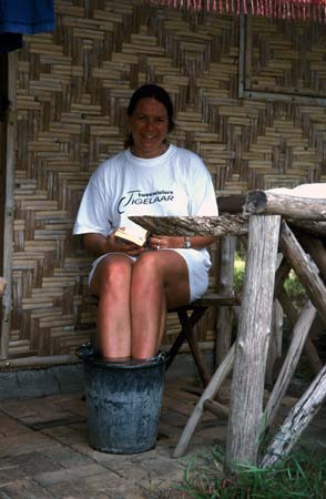 geen droge draad meer aan ons lijf. Bij Mart was het water zelfs in zijn