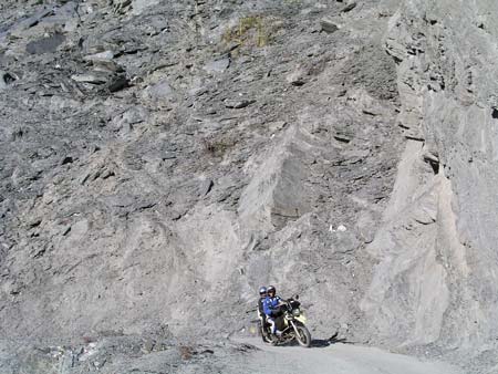 smalle weg ver van beschaving zagen we twee motoren langs de kant van de weg