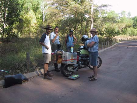 toen we de motoren oppakten maar daar hadden we ons op gekleed. In Kulgera namen