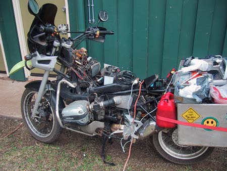 hield toen hij de spullen van de motor aan het halen was. We waren hondsmoe van