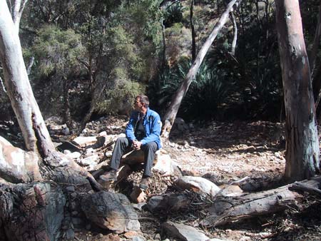 dat zich vlak naast onze tent ophield, ineens dooreen dingo weggejaagd werd.